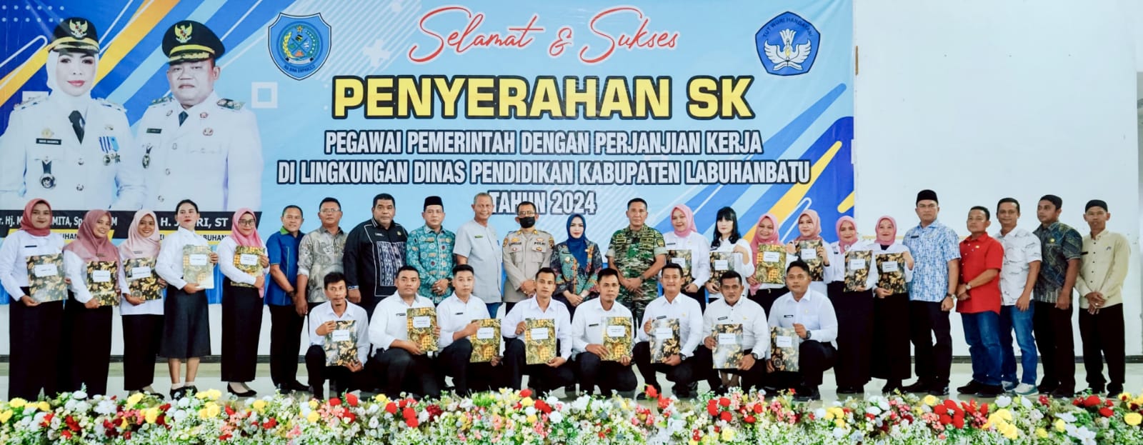 Lensa Peristiwa.Com Labuhanbatu-Sebanyak 407 Pegawai Pemerintah dengan Perjanjian Kerja (PPPK) di lingkungan Dinas Pendidikan Kabupaten Labuhanbatu Tahun 2024 resmi menerima Surat Keputusan (SK) dari Bupati Labuhanbatu, dr. Hj. Maya Hasmita.